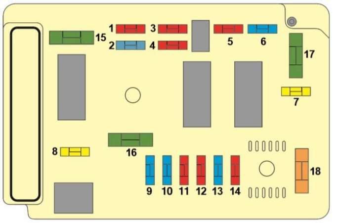 - Calculateur électronique F4 10A (système d’injection de carburant, système de direction assistée) – Capteurs (niveau de liquide de refroidissement du moteur diesel, régulateur de vitesse, feux de freinage, embrayage) – Relais SensoDrive et de transmission automatique – Unité de système de chauffage auxiliaire