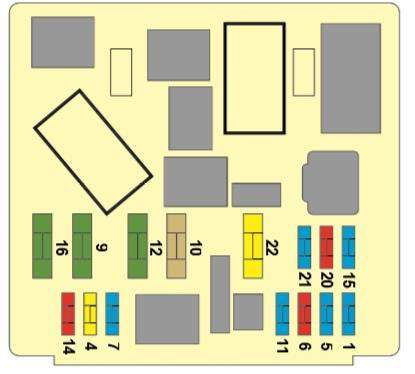 - F15 15A Dispositifs du système de contrôle du moteur (bobine d’allumage, électrovanne, capteur d’oxygène, système d’injection de carburant) — Carter de carburant — Réchauffeur de carburant diesel