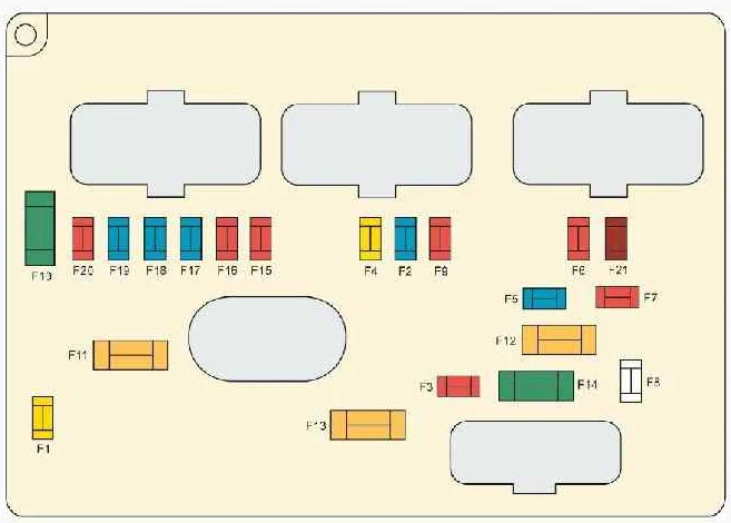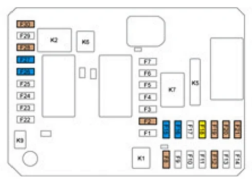 R21 | – | Chauffage de filtre à carburant 10A Relais de système de refroidissement 5A |