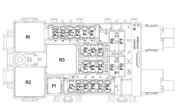 R4 | – | Ordinateur moteur – unité de protection de génération de courant – unité de commande du ventilateur électrique du système de refroidissement – dispositif central de support de tension – générateur de recul |