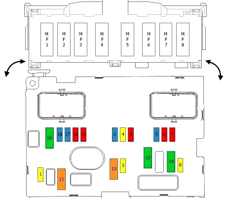 F11 | 5A | Calculateur de contrôle de stabilité, unité de commutation d’alarme générale, dispositif de numérisation de clé électronique. |