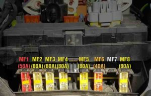 de pompe de direction assistée alimentation BSI MF5 80A alimentation ESP MF6 40A alimentation ESP MF7 20A suspension active à amortissement réglable MF8 80A alimentation BSI