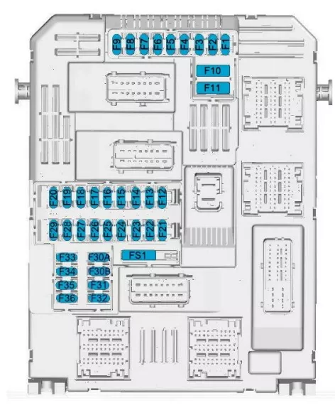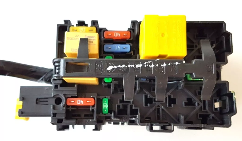 F5 | Inteligentny moduł przełączający (kierunkowskazy prawe, światła boczne przednie prawe, światła stopu prawe, światła cofania lewe, światła przeciwmgielne prawe). Podgrzewana przednia szyba 20A |